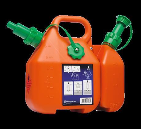 Ta kombinirana posoda ima učinkovito zaščito proti prelivanju goriva. Ko je rezervoar poln, se pretok samodejno zapre in kanto lahko dvignete, ne da bi se kaj polilo. Posodi lahko ločimo eno od druge. Med njima je prostor za pile in orodje.